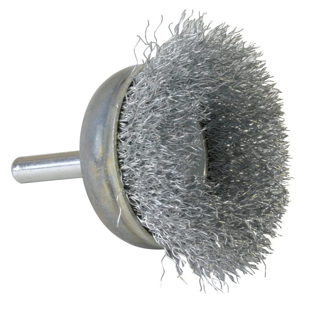 Feine Topfbürste mit einem Durchmesser von 50mm und gewelltem Draht, ideal zum Reinigen, Entrosten und Entgraten von Werkstoffen wie Metall, Stein oder Holz. Die Topfbürste ist universell für alle Bohrmaschinen geeignet. Der Aufnahmedorn hat einen Durchmesser von 6mm. Auch für die Vorbereitung von Löt- und Schweißarbeiten geeignet.